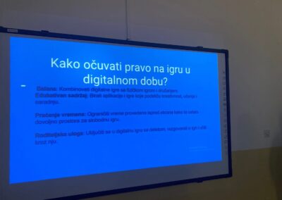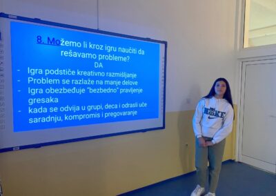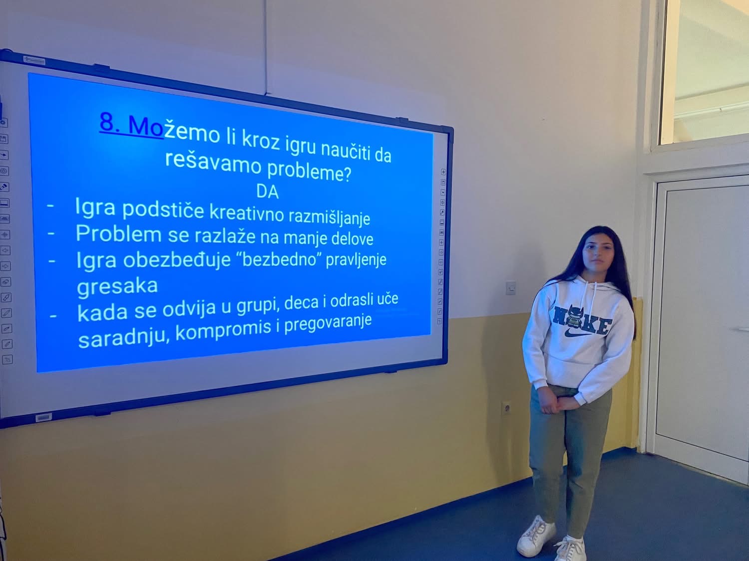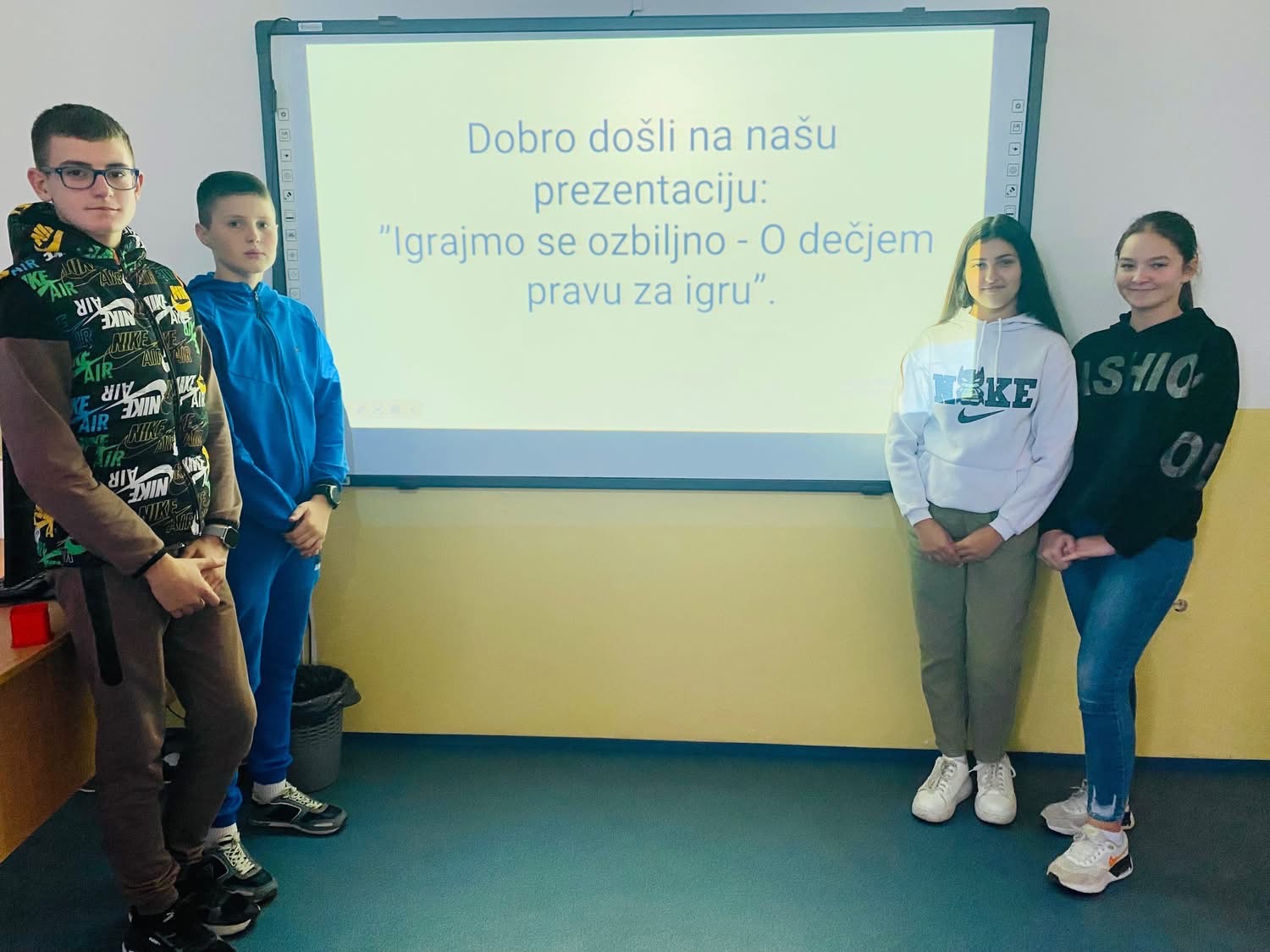 Чланови Ученичког парламента наше школе су у оквиру Дечје недење одржали презентацију ученицима петог и осмог разреда на тему “Играјмо се озбиљно – О нашем праву на игру”.