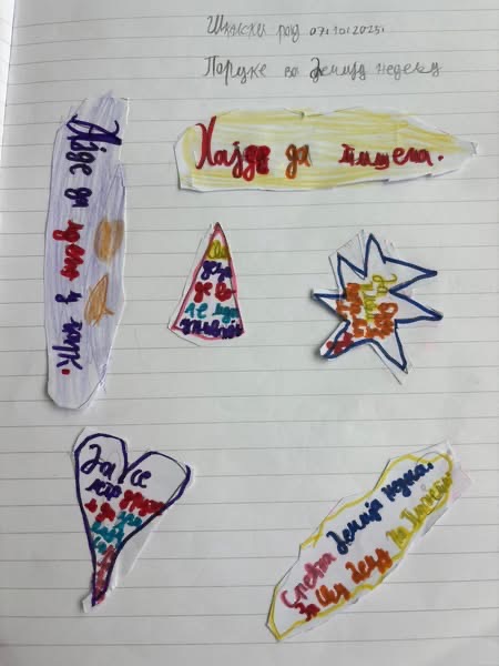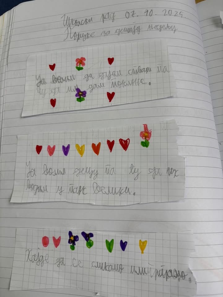 У оквиру слободних активности, ученици другог разреда у Годачици су писали порруке деци света. Па упамтите: Деца желе да сва деца света имају љубав, срећу, радост и доброту. Њихова порука гласи: “Децу треба волети, хранити, мазити и пазити!”