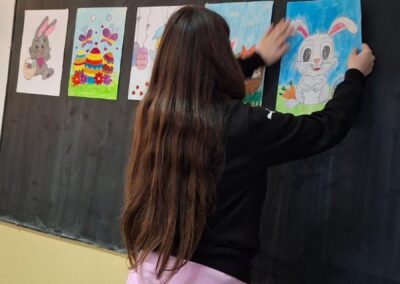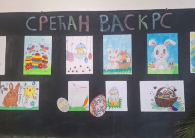 На часовима ликовне културе и у оквиру једносменског пројекта, ученици су заједно са наставницом Александром Драгањац израђивали радове на тему Васкрса. Користећи различите технике, осликавали су и украшавали медијапан са разноврсним празничним мотивима. Настали радови изложени су у школском холу, где доприносе свечаној и креативној атмосфери.