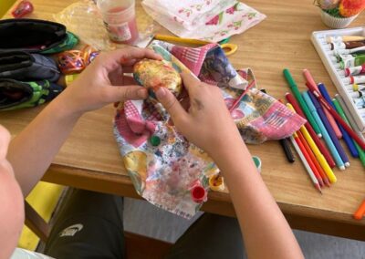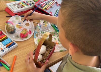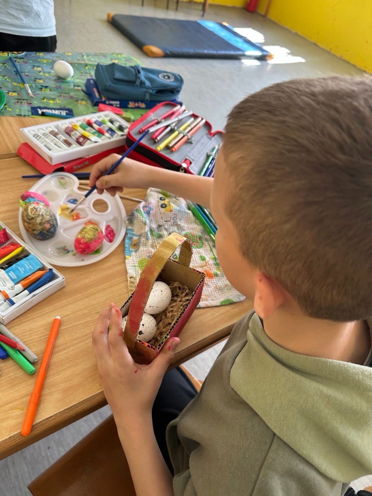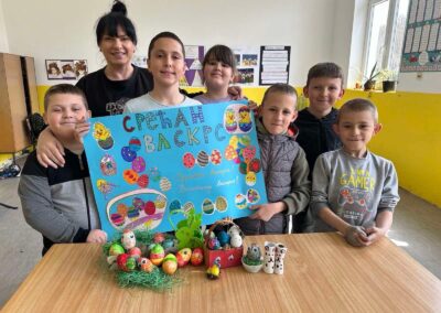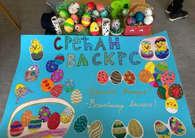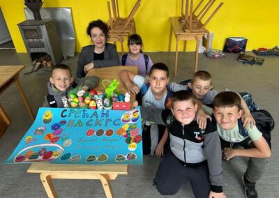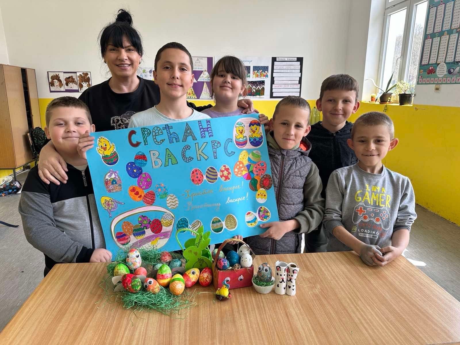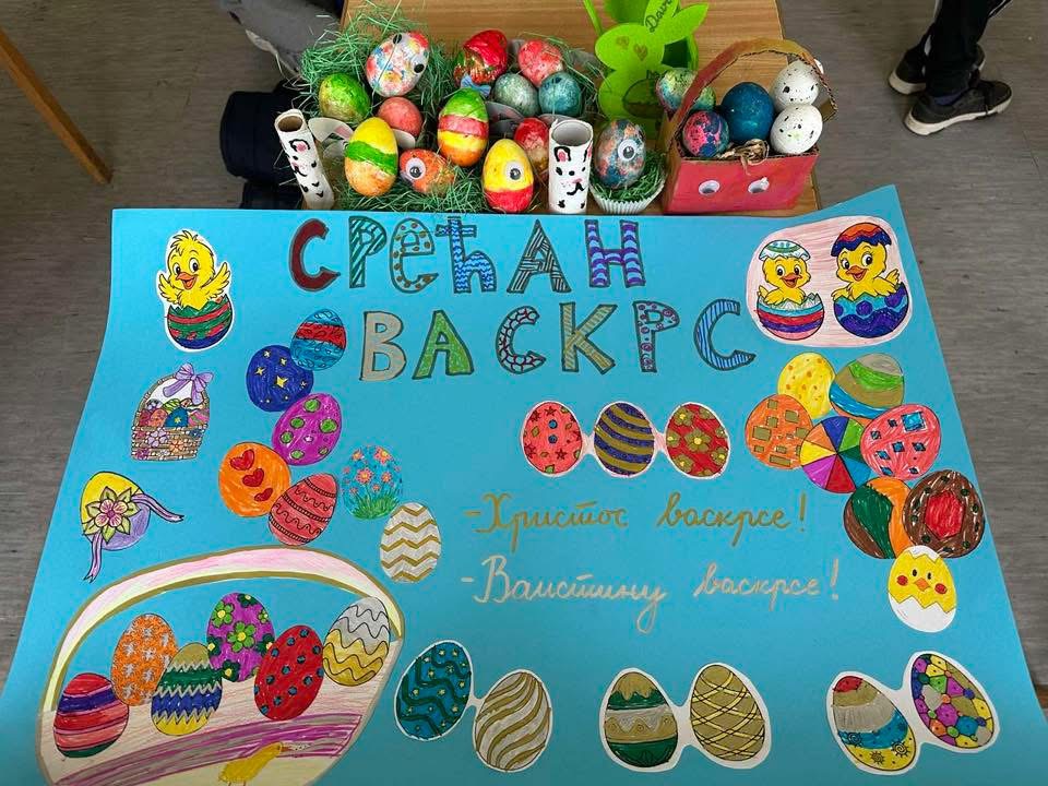 У оквиру тематске недеље “У сусрет највећем хришћанском празнику, Васкрсу”, у издвијеном одељењу у Лешеву, одржан је час тимске наставе који су реализовале учитељица Јована Јањетовић и библиотекарка школе Анђелка Милосављевић. У ведрој и подстицајној атмосфери, ученици су кроз заједничке активности развијали креативност и, у духу Васкрса, усвајали вредности овог празника.